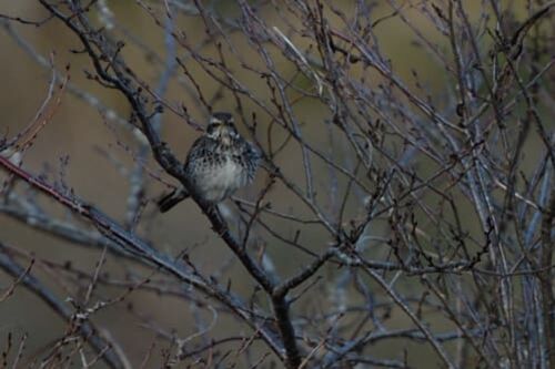 いつもの洞庭湖に、この子というには迫力のあるツグミがいました。レンズの先7~8M のところで、おっさんの存在を全く気にせずというか無視して長い間、雀のように地面に居ました。